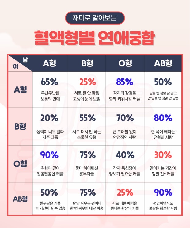 오늘은 [혈액형별 연애점수 테스트]에 대해서 살펴봅니다.