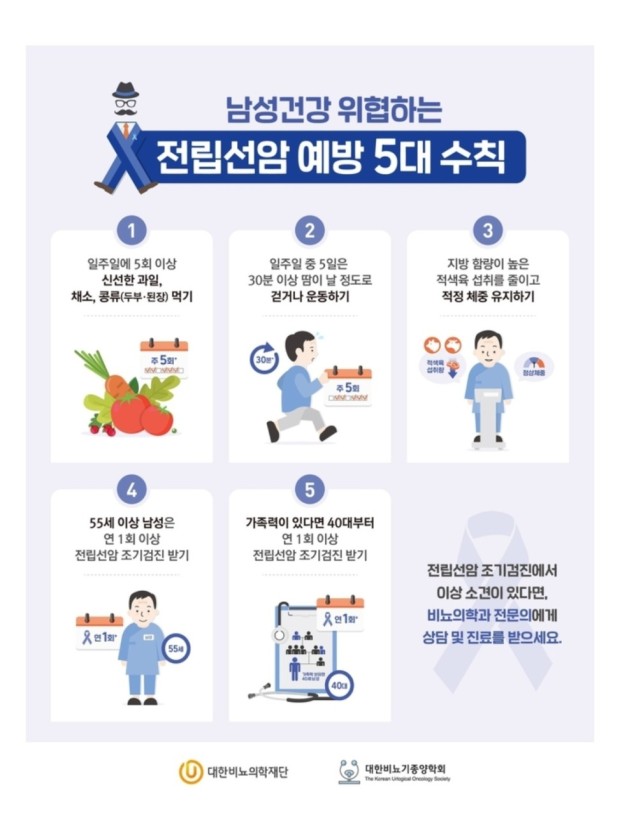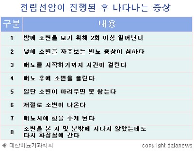 국소암은 무증상이므로 50세가 넘으면 직장수지검사, 전립선 특이항원(PSA)을 매년 검사하는 것이 좋다.