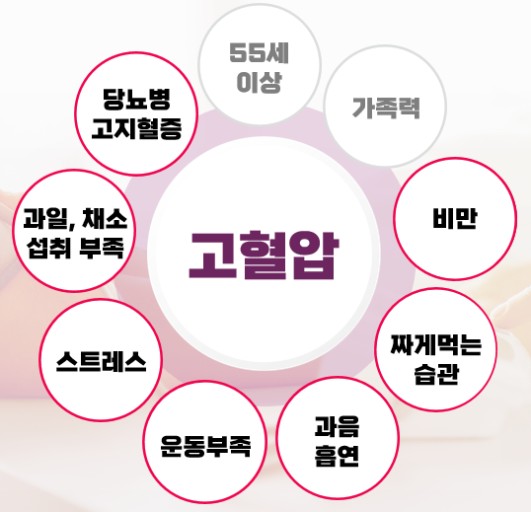 2) 유전 요인 : 혈압이 높은 가족이 있다면 유전적 원인으로 고혈압 위험이 증가함