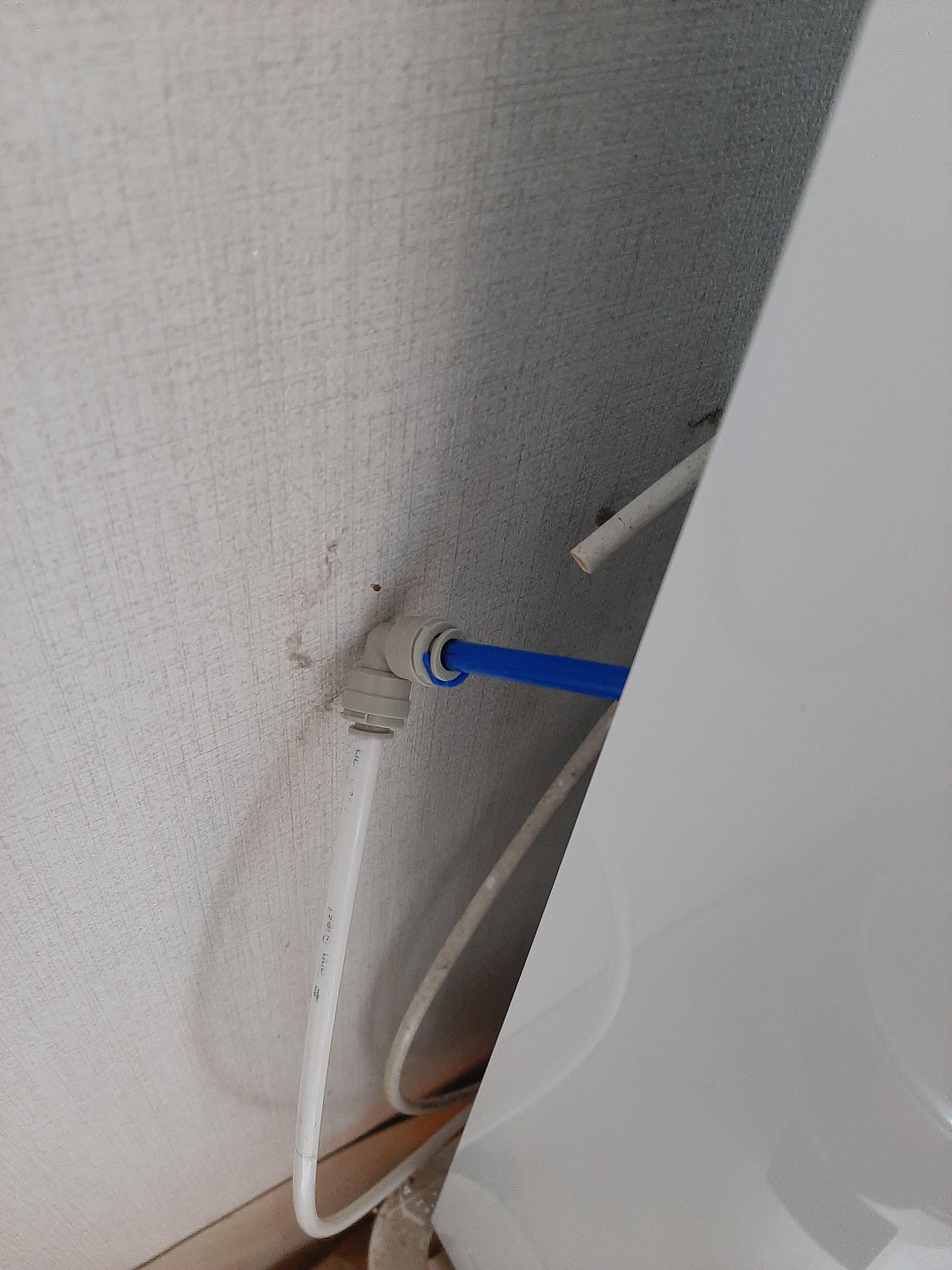 정수기 뒷부분 L형(엘보)피팅 연결 부분